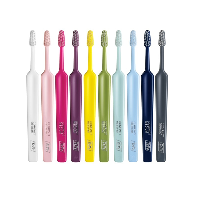The Compact toothbrush is a high-quality toothbrush with a user-friendly handle, a tapered brush head for improved access and end-rounded filaments for gentle cleaning. The toothbrush should be used twice a day, morning and evening, together with toothpaste to maintain good oral hygiene.